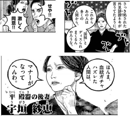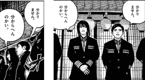 基本的に大和の中央が大阪ですから、キャラのセリフは関西弁が主に使われるのですが、関西弁独特の言い回しやテンポのある会話と、現代ネット上で使われている言葉が自然に使われているところなどが、全体的に黒いトーンの画風と相反して、味わい深い雰囲気を出しています。