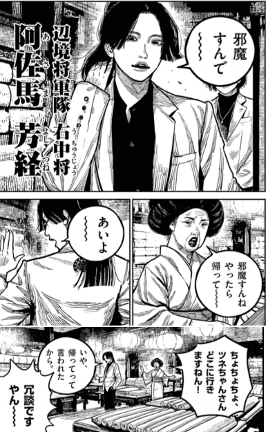 青輝は亡き妻小紀との誓いを果たすため大阪に向かったのは、辺境将軍龍門光英が主宰する人材登用である「登竜門」に参加するためでした。その際に一緒に登竜門に挑むことになる「ツネちゃんさん」こと阿佐馬芳経に出会います。龍門将軍やツネちゃんさんもそれぞれに非常に魅力的なキャラクターですが、その後も次々と個性的で魅力あるキャラクターが登場します。