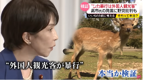ただ、奈良のシカの件の高市さん発言の検証、とか、さすがにそれはちょっとやりすぎですね。もはや悪意しか感じない。外国人が鹿に暴行なんて件はずいぶん前から問題になってたし、動画もいっぱい上がってて、何を今さらって感じでしかないのに、しゃあしゃあと「見たことない」という人のコメントだけ報道して、「外国人による暴行は確認できませんでした。」ですって。