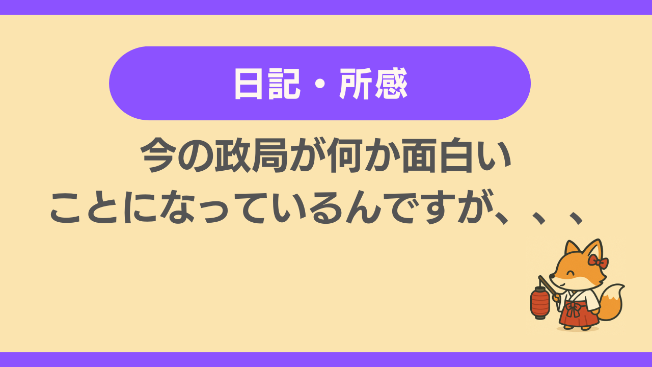 高市自民党総裁誕生!それに伴って政局がとても面白いことになっていますね。